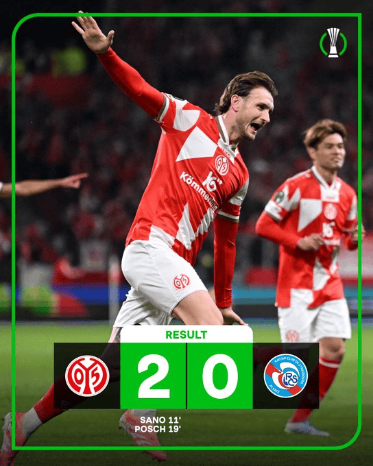 虎扑04月10日讯在今夜结束的一场欧协联1/4决赛首回合的比赛中,美因茨坐镇主场凭借开场20分钟内打进的2个进球2-0击败了来访的斯特拉斯堡,在两回合的比赛中占得先机。