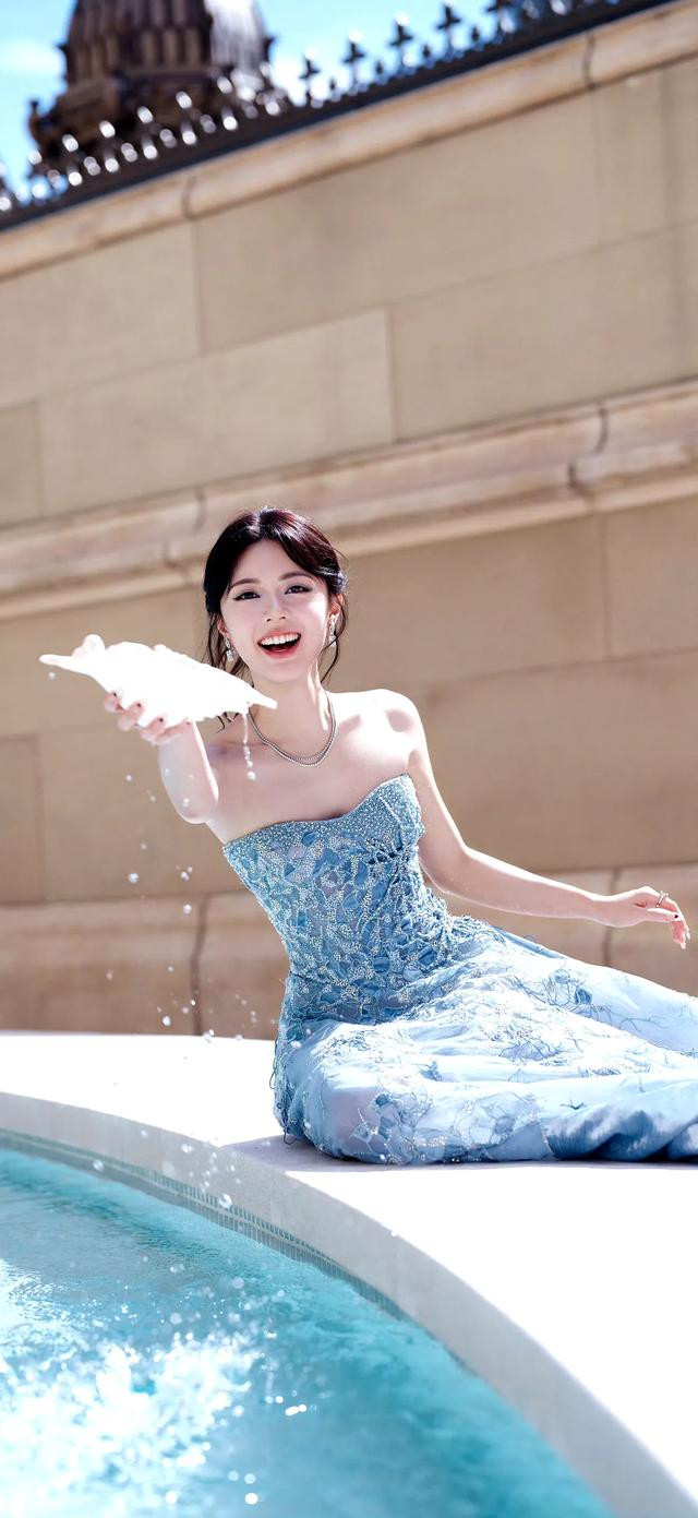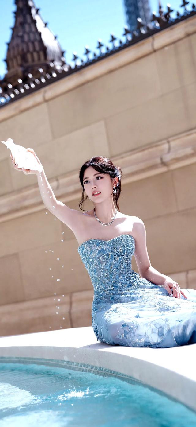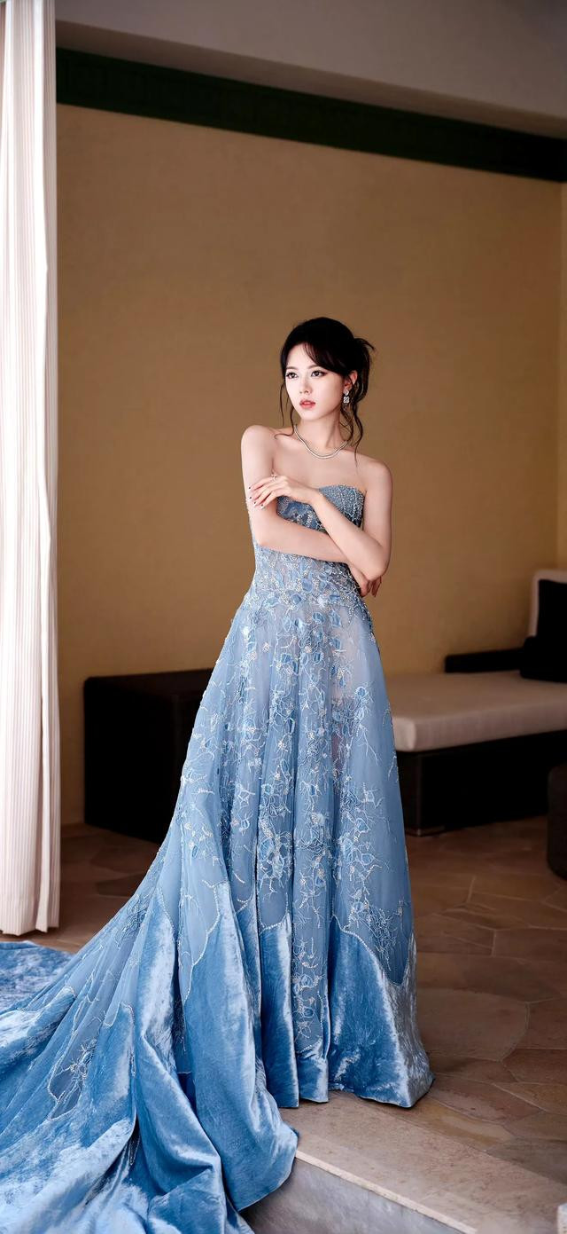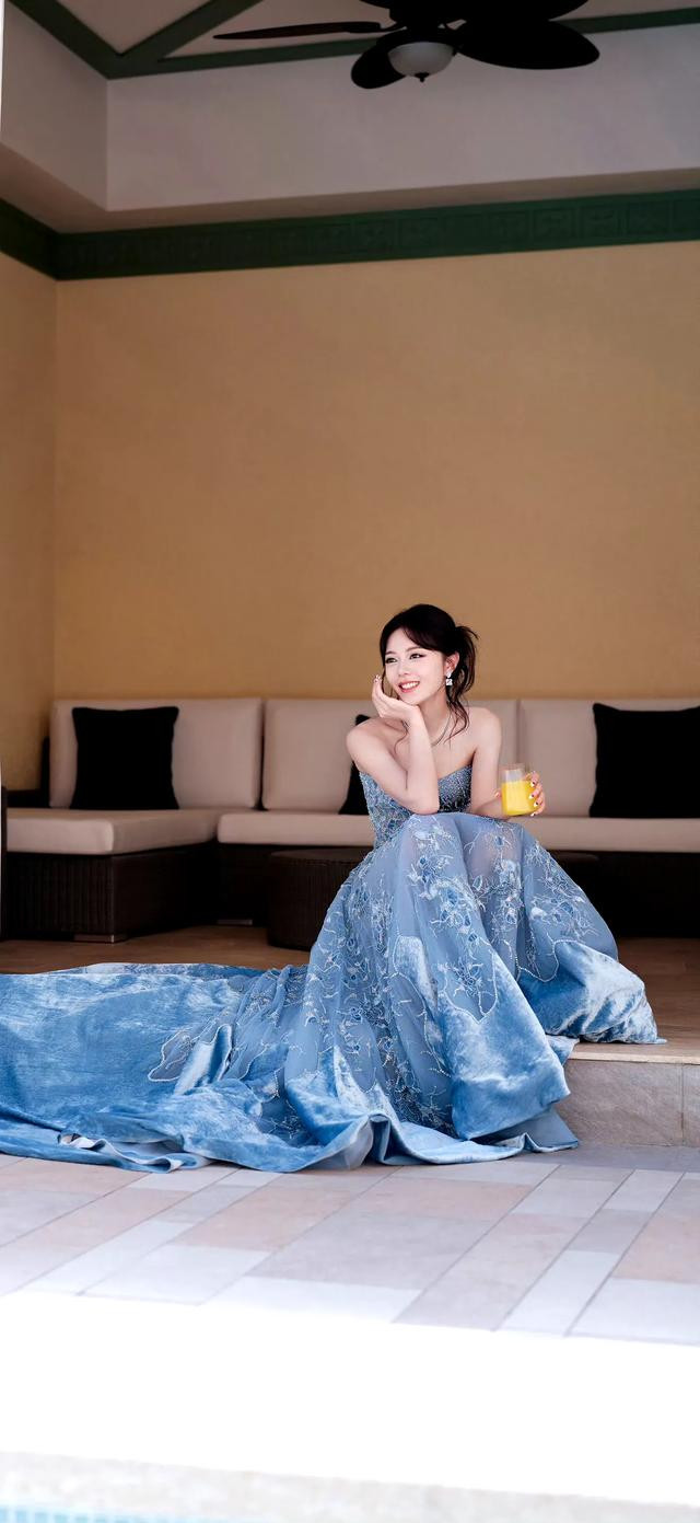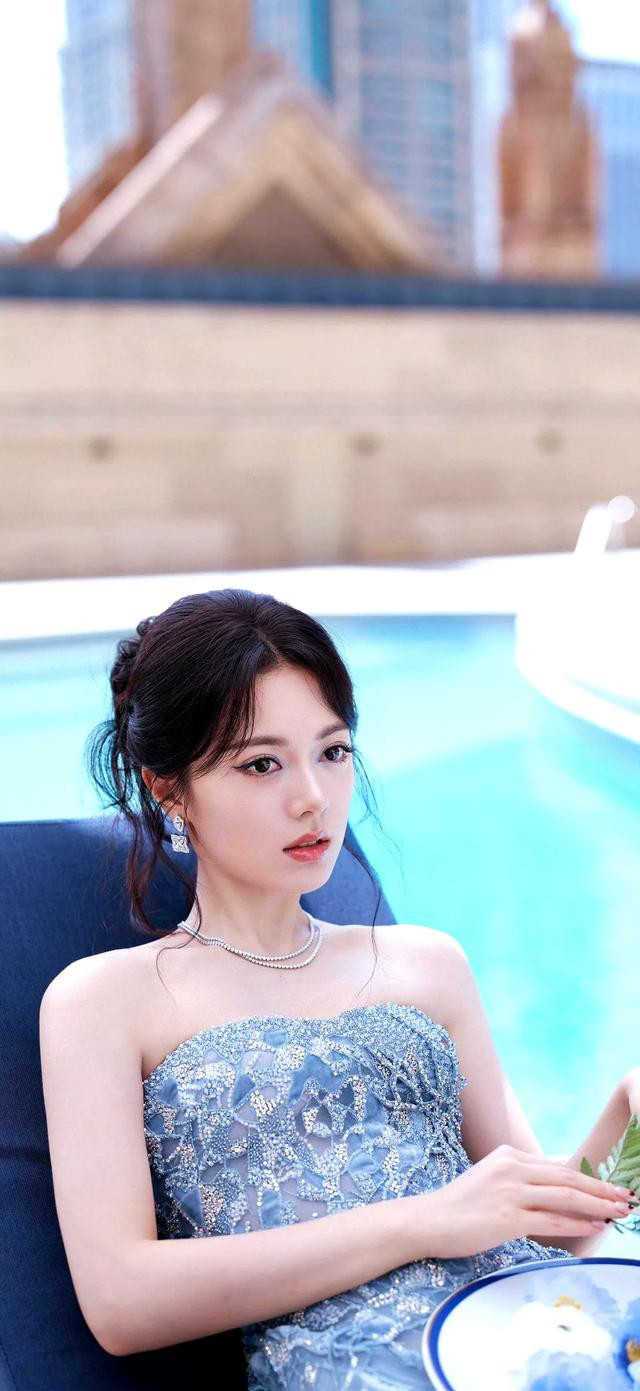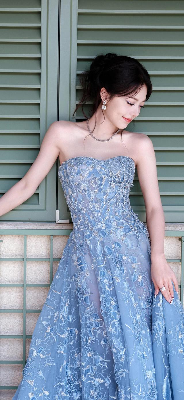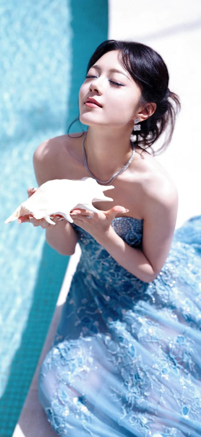 赵今麦娇羞可爱天生丽质壁纸美图, 赵今麦抹胸长裙高清无水印壁纸