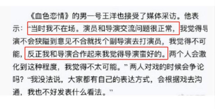 “我觉得导演不会因为意见不合就狭隘到去打一个演员,我感觉导演蛮好的。”
