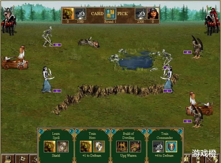 随机大/超大地图难度较低,电脑通常发展不起来。只要猥琐发育,打下龙窟拿到地面超级宝物,后期不用太在意细节,宝物带天使联盟的散件就行,土系、气系魔法书也很多,玩起来比较轻松。