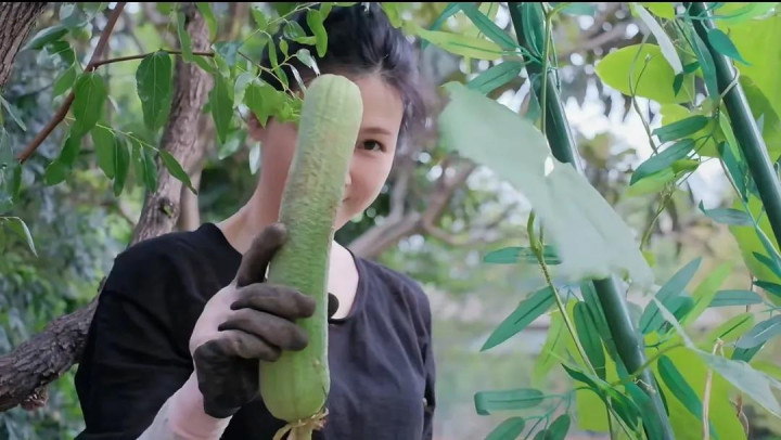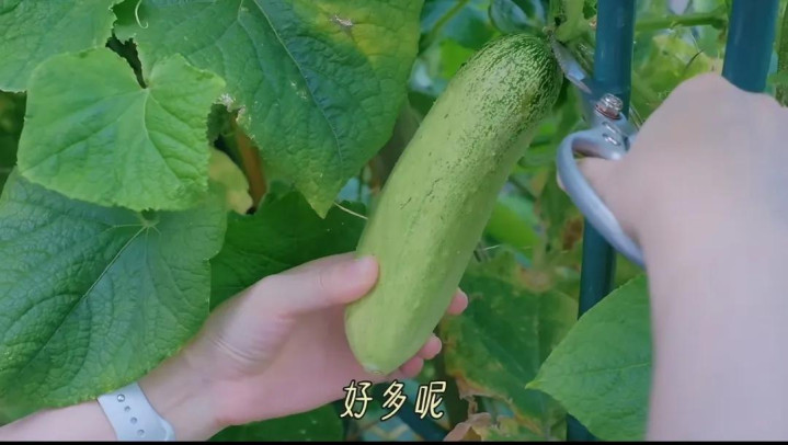 从菜园的品类来说,黄瓜、辣椒、豆角、丝瓜……等等,都被她种成了大丰收。