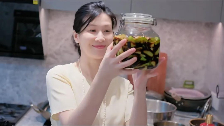 童蕾真是太贤惠! 自己在家摘黄瓜做酱菜, 成功后开心得像孩子