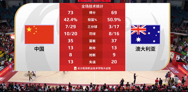 全场比赛结束,比分定格在了73-69。