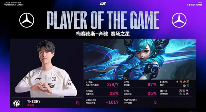 劣势一万翻盘,3-9打出超神一样的表现,只能说不愧是IG,也不愧是Theshy,这种特色从2018延续到现在。