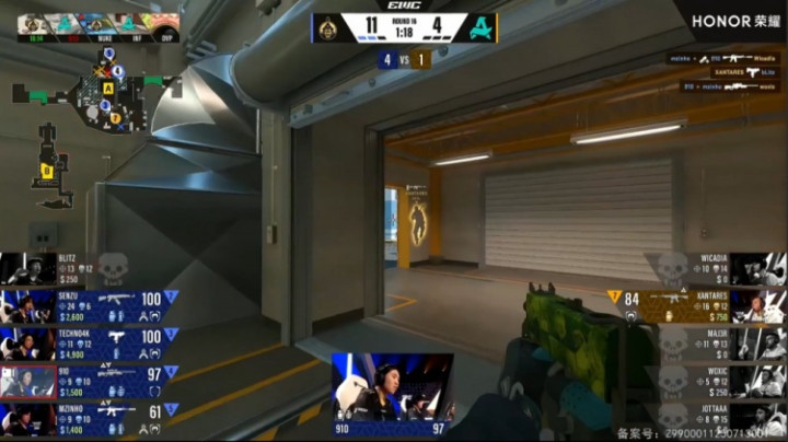 第7局开场Wicdia全白换掉910,bLitz单人带包下管道,狠人外场继续找人被Senzu击杀,4k来A击杀三楼上的maj3r,bLitz在A下包,jottaaa外场保枪被缴,蒙古6-1Aurora。