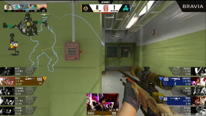 第8局Auroa枪械不全,Senzu先杀Wicadia,狠人三楼上拉掉两人,Senzu双杀收尾,蒙古7-1Aurora。