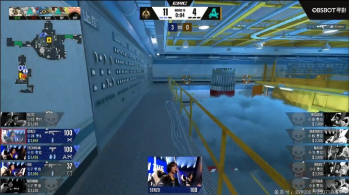 第5局来到长枪,外场烟散,蒙古冲黄房2换2在A下包,外场Senzu外场找人击杀狠人,maj3r残局1v3偷掉910与4k但被Senzu击杀,蒙古4-1Aurora。