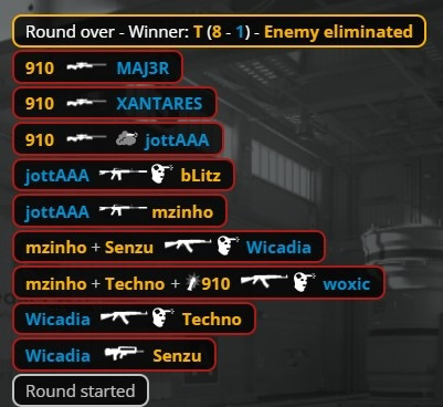 第10局蒙古来B,开场jottaaa再次与Wicadia打出人数优势,mzinho在B下包,残局Senzu一打二失手,蒙古8-2Aurora。