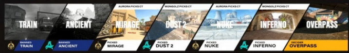 第2局Aurora强起,外场狠人吹风机换掉mzinho,随后蒙古进铁板,Senzu与4k击杀maj3r与jottaaa,蒙古在B下包,woxic与Wicadia保枪,蒙古2-0Aurora。