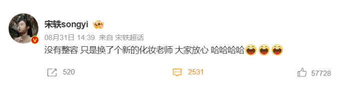 第一次见到有女明星如此急切地连发两条动态,只为澄清一件事——整容风波。8月31日,宋轶在社交平台发文表示自己并未整容,只是更换了化妆老师,随后又补充说明因工作强度大体重下降,仅瘦了两斤。语气温和却难掩在意,三个表情符号背后,藏着怎样的无奈?