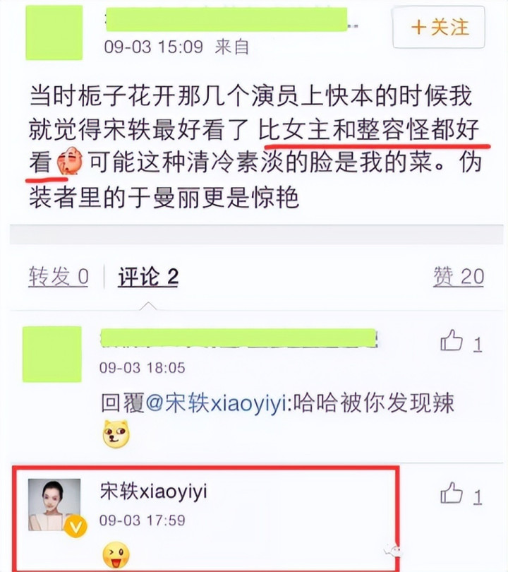 这种“既藏又秀”的态度,逐渐消耗了粉丝热情:真人CP粉觉得扫兴,唯粉也渐生疲态。而当白敬亭因“糖送八大家”等CP操作遭反噬时,宋轶也难以独善其身。更有网友翻出她早年争议行为:曾亲自回复拉踩《栀子花开》同组演员的评论,直言某演员为“整容怪”,情商遭质疑。