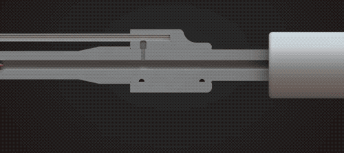 当火光褪去后,塑料外壳在内部气压的推动下开始慢慢的滑出,其与枪口连接处的尾部也益出了更多的白色烟雾。
