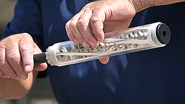 在没有外壁的消音器上再次进行射击后我们可以看到,当子弹飞出枪口后,其会对第一块挡板施加非常巨大的冲击力,由于仓室较小的缘故,这股冲击力就导致了消音器塑料外壁的破碎。