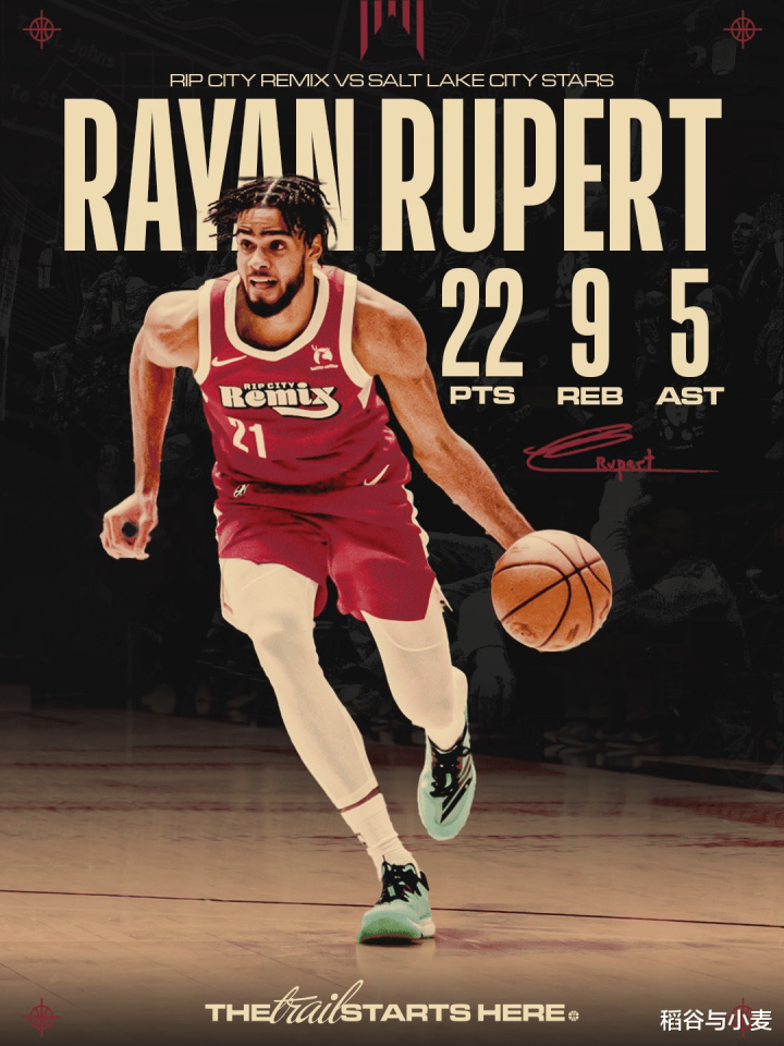 本场比赛中,被开拓者下放到NBA发展联盟赛场进行锻炼的侧翼新星拉扬-吕佩尔(Rayan Rupert)完成了自己本赛季在NBA发展联盟赛场的首秀,而他在这场首秀中的表现算得上是相当突出。吕佩尔全场出场37分23秒,投篮11中8,三分线外3中2,罚球4中3,得到了22分9篮板5助攻1抢断1盖帽的全面数据,还有2次失误和3次犯规,正负值更是达到了全场最高的+19。吕佩尔在进攻端展现出了全面的得分能力,他的出手次数并不多,但是他的进攻效率相当惊人,他不仅突破犀利,而且在外线投篮方面的稳定性也是超出大家预期的。吕佩尔在出手次数有限的情况下得到了不少的分数,他展现出了一定的传球能力和策应能力,在进攻端的功能非常全面。除此之外,吕佩尔在防守端的表现也是值得肯定的,同样是将自己在防守端的作用发挥了出来。总体来看,攻守兼备的吕佩尔无疑也是球队能够战胜实力不俗的对手的重要因素。