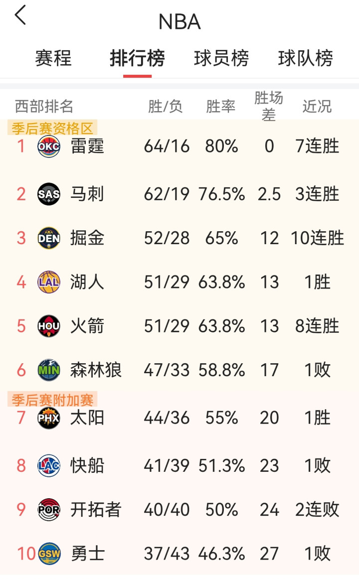 北京时间4月11日,NBA常规赛西部焦点战落下帷幕,掘金主场127-107大胜雷霆。这场看似普通的轮休大战,却彻底敲定了西部季后赛的最终格局,火箭意外收获首轮对位大礼,湖人则从争冠热门沦为季后赛偏弱的一方,功亏一篑的结局令人唏嘘。