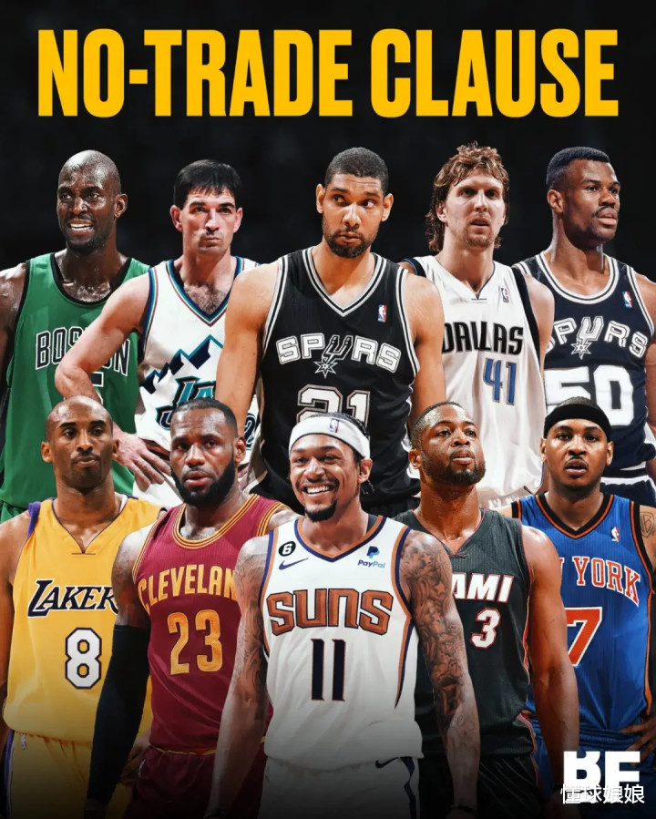 NBA历史上,拥有完整交易否决权的,其实只有10人:大卫-罗宾逊、斯托克顿、诺维茨基、邓肯、科比、加内特、韦德、安东尼、詹姆斯,还有比尔。