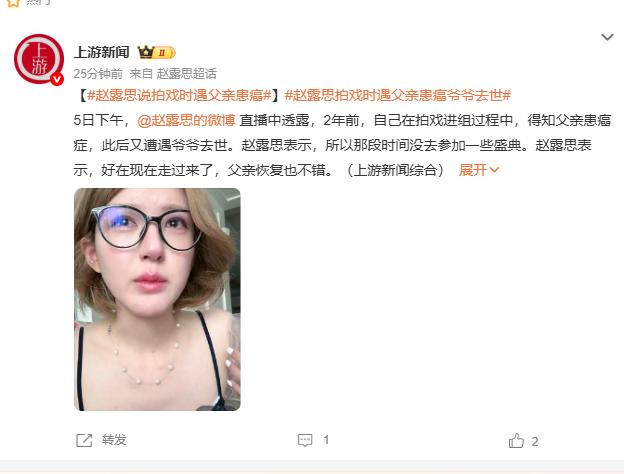 赵露思曝光的最后一个消息,莫过于爷爷的突然离世。