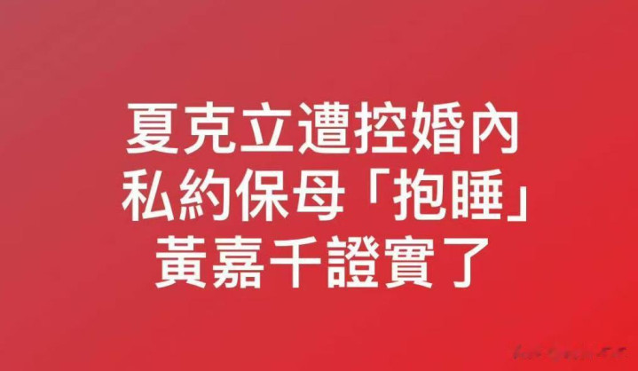 之后二人不断通过社交平台、经纪人以及律师之口反复拉扯,黄嘉千更是直言夏克立情绪极为不稳定,除了家暴,还威胁跳楼,散布不实言论。夏克立则指控妻子不让见孩子,转移夫妻共同财产等等。