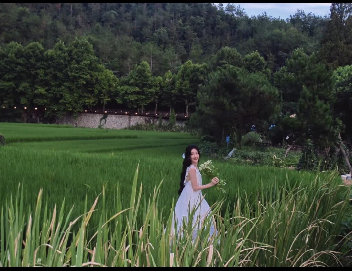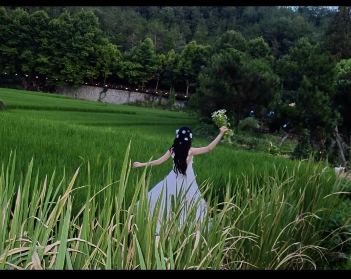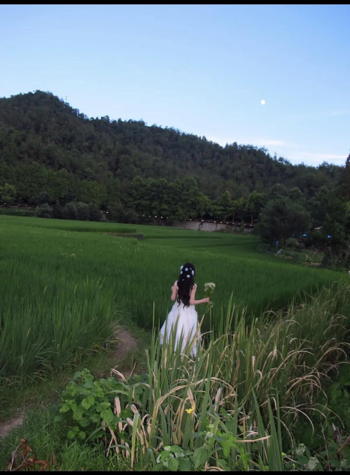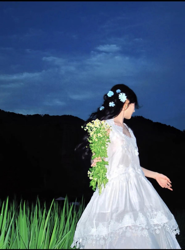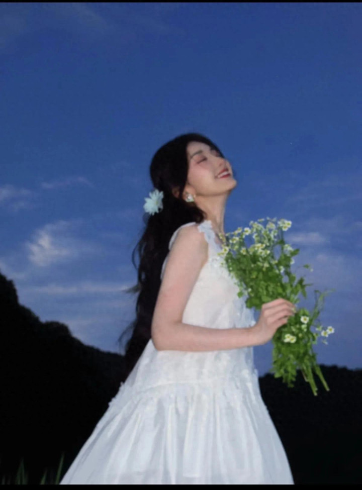 毛晓彤晒立秋照, 穿白色连衣裙半扎发好美呀, 还带着一丝俏皮可爱