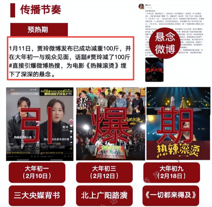 到了《热辣滚烫》,营销就更离谱了——居然把“贾玲瘦了100斤”当成了最大卖点。