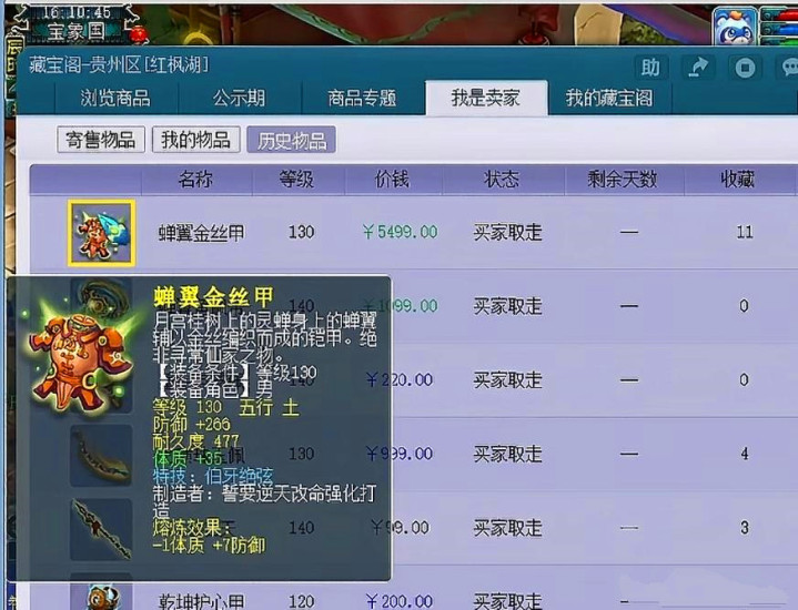上面的这位玩家现在在藏宝阁上卖掉的是一件130级的铠甲,这件铠甲拥有着伯牙绝弦的特技,其技能效果就是法系的放下屠刀。上面的这件130级的铠甲目前的防御属性达到了273,现在在藏宝阁上被别人以5500的价格给买走了,然后有部分玩家就表示现在法系放下可真贵呀。不过,这不只是法系法加特技的原因,这件铠甲的初始防御属性比较高也是其中的一部分原因。如果属性稍微低一点都没有人愿意要。
