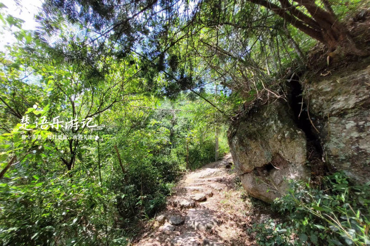 古道自村子西边开始,前半段相当平缓,既有阶梯步道也有卵石路面,半途还有一条岔道,沿着左边的卵石路面往前走,可以到达一处山坳。