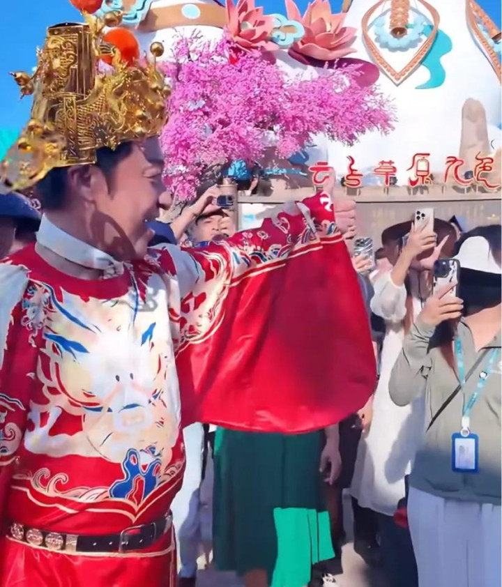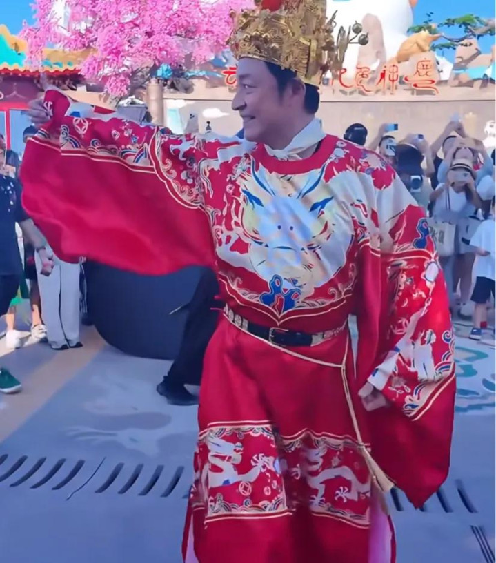 昨天,马景涛现身浙江某景区,身穿红色的财神戏服,和网友们互动打招呼。