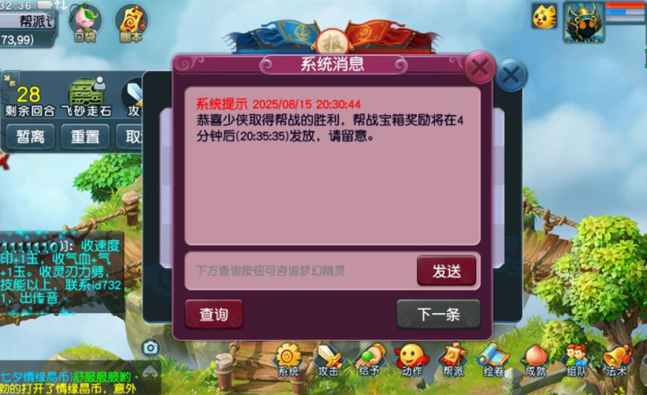 现在的梦幻西游中有很多的设置都是优化过的。对于玩家来说是十分友好的,就比如大家完成了帮战以后抢箱子都是有时间提醒的。但是上面这位玩家却表示当帮战中的箱子有了时间提醒以后就更难抢了。原因是以前的箱子是到点之后不提醒直接刷的,大家根本就卡不准点,所以有一部玩家会错过。现在有了箱子的刷新时间提醒以后就有一部分玩家卡点切回来,所以在最后抢箱子的玩家变多了。