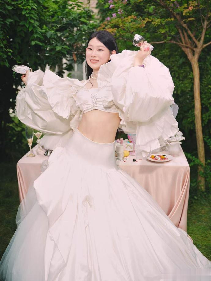 晒出的照片里,沈佳润披着长发,化着精致的红唇美妆,妆造十分养眼。她穿着露腰款式公主长裙,一颦一笑、一举一动都美得晃眼。不得不承认,这样的沈佳润确实是自信明艳,美得夸张啊。
