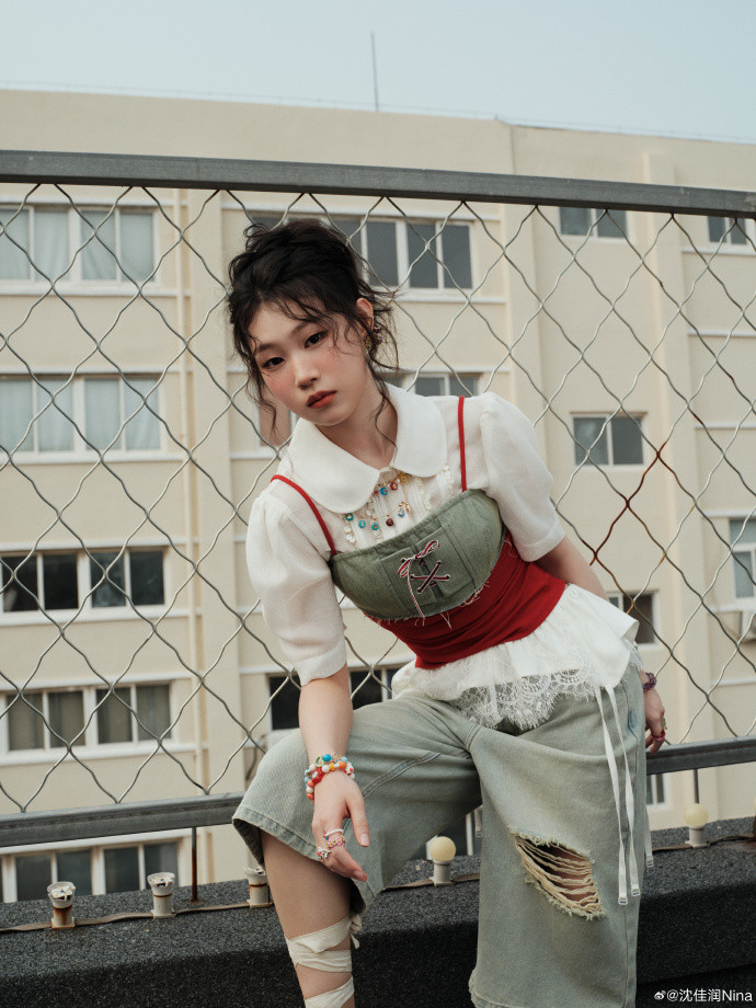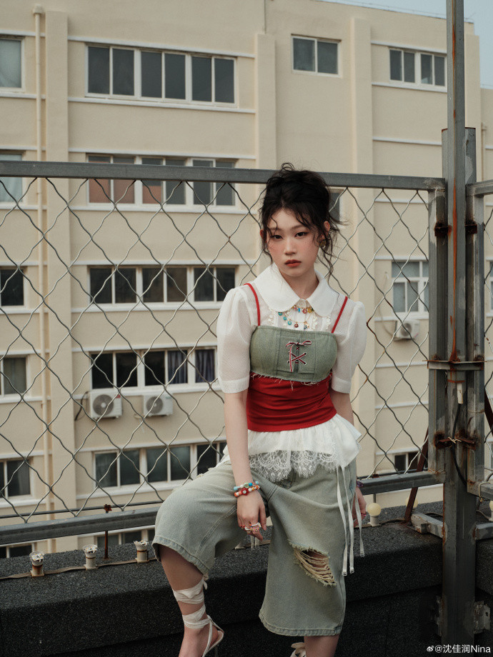 最后一个造型里,沈佳润将长发盘了起来,卷发发型又美又俏丽。她穿着白色短袖衬衫搭配小吊带,破洞牛仔裤充满时尚感。沈佳润穿着不同款式的look在镜头前各种造型凹不停,真是隔着屏幕都被美到了。