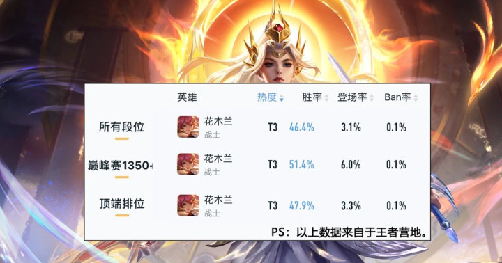 这对全期都依赖该装备的花木兰来说,确实是一波不错的增强,能够缓解中后期进场空间差的短板问题,使得巅峰1350的胜率达到了51%以上。