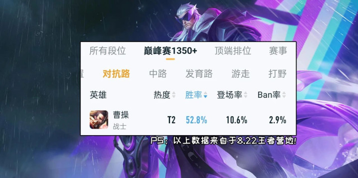 曹操我们之前有说过,这波调整是纯削弱,因为对法球装的适配性大打折扣,就像末世,前期一波大招伤害至少下降400点,中后期幅度则更高,所以,胜率下降是意料之内。