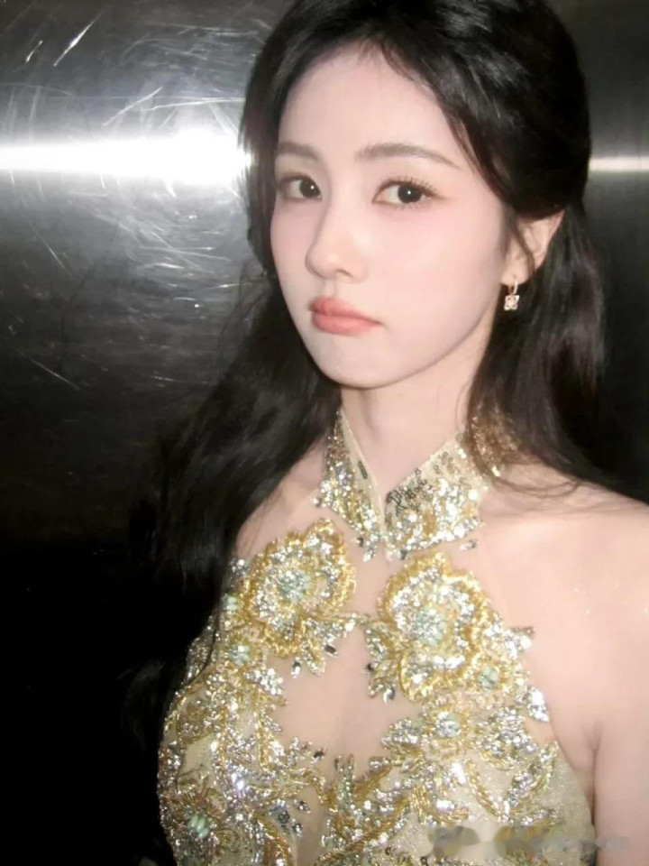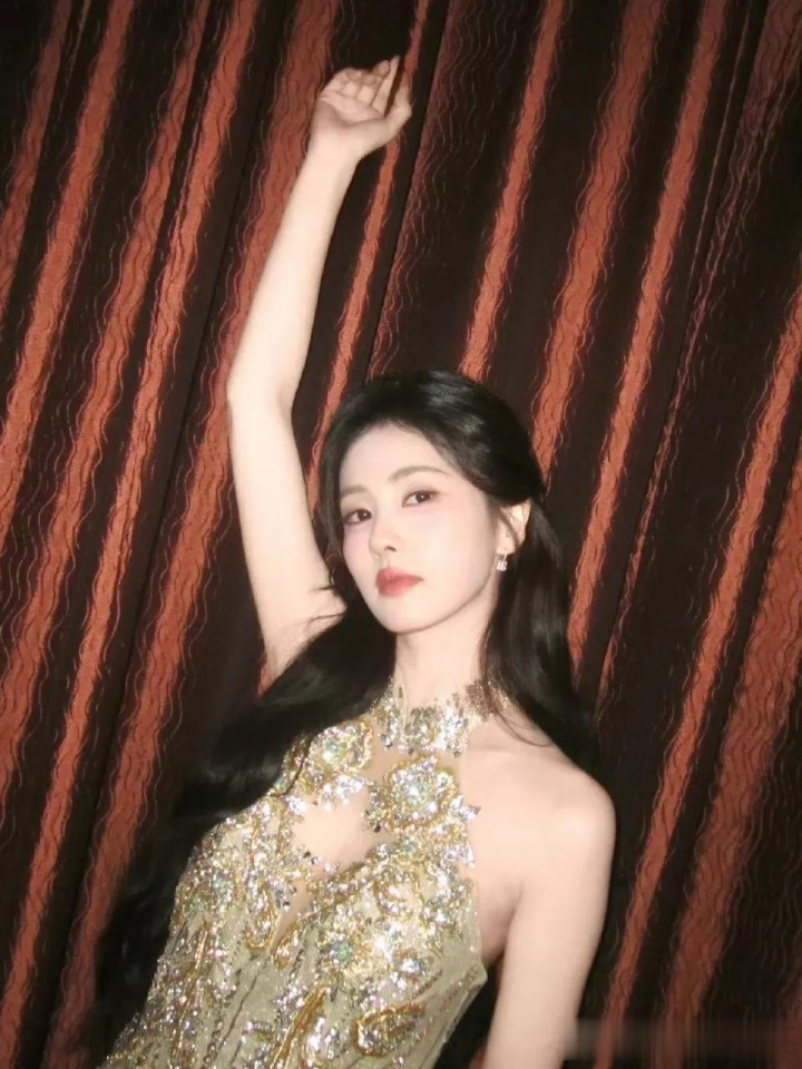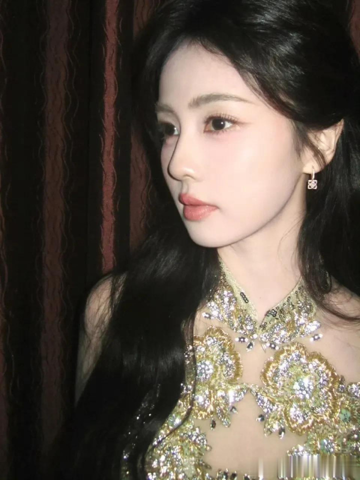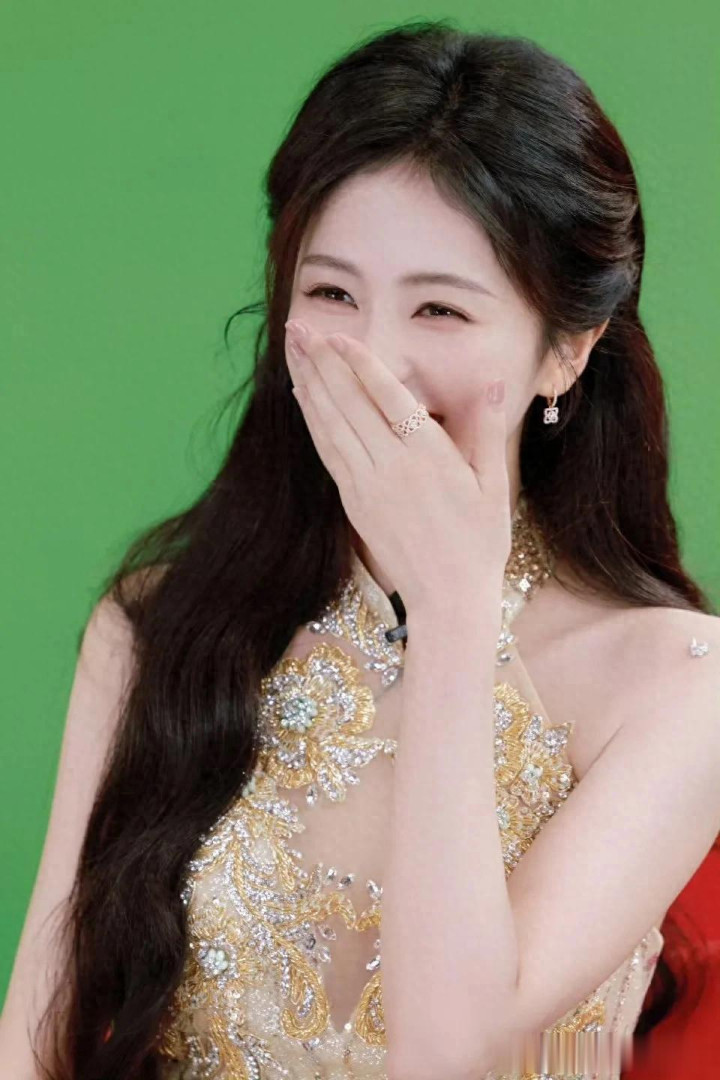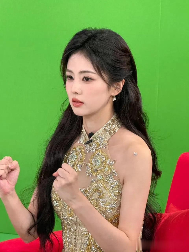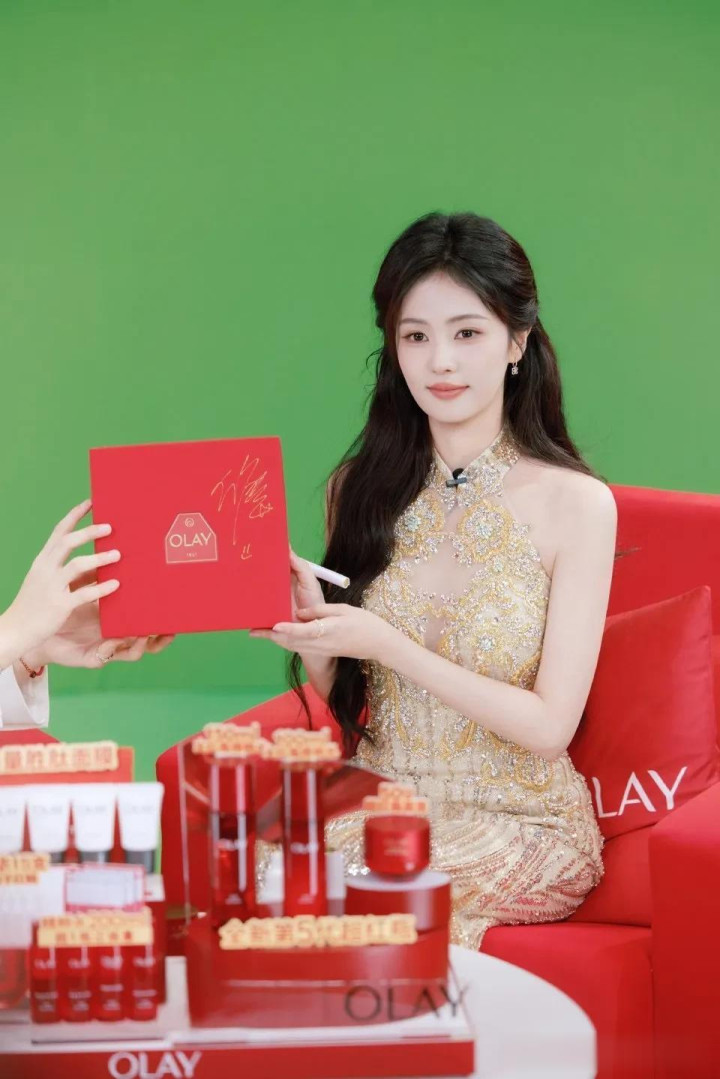 白鹿直播生图, 金色刺绣旗袍优雅吸睛