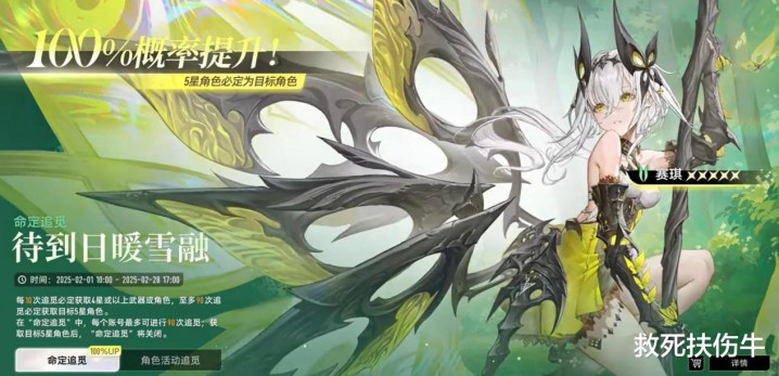 《二重螺旋》三测的时候,角色池0.6%出货率,90抽小保底,无概率递增,而且游戏非常抠门,玩家一个月资源全肝都没30抽,武器池则是0.8%出率,80抽大保底,三测有个专武可肝,但是非常依赖一个“委托”系统,体力限制巨大。