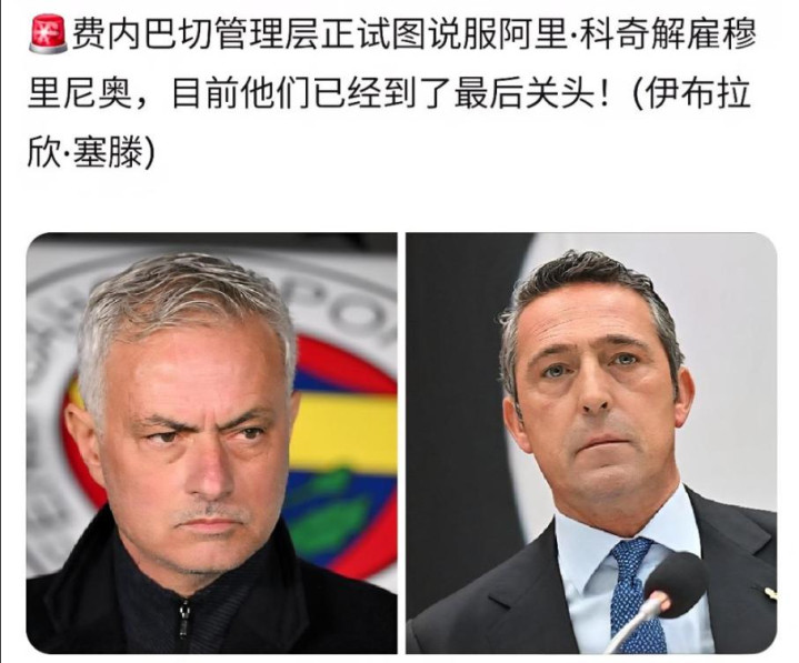 费内巴切老板阿里科奇,无奈解雇了对抗加拉塔萨雷的战友穆里尼奥,也是为了9月竞选的连任,没法子,穆帅欧冠生死战的赛前发言,惹来了费内巴切管理层的众怒,尤其是那位嘲笑本菲卡(欧洲排名第11位)是小球队的金副总,穆帅无语至极,直接说不认识这个人。